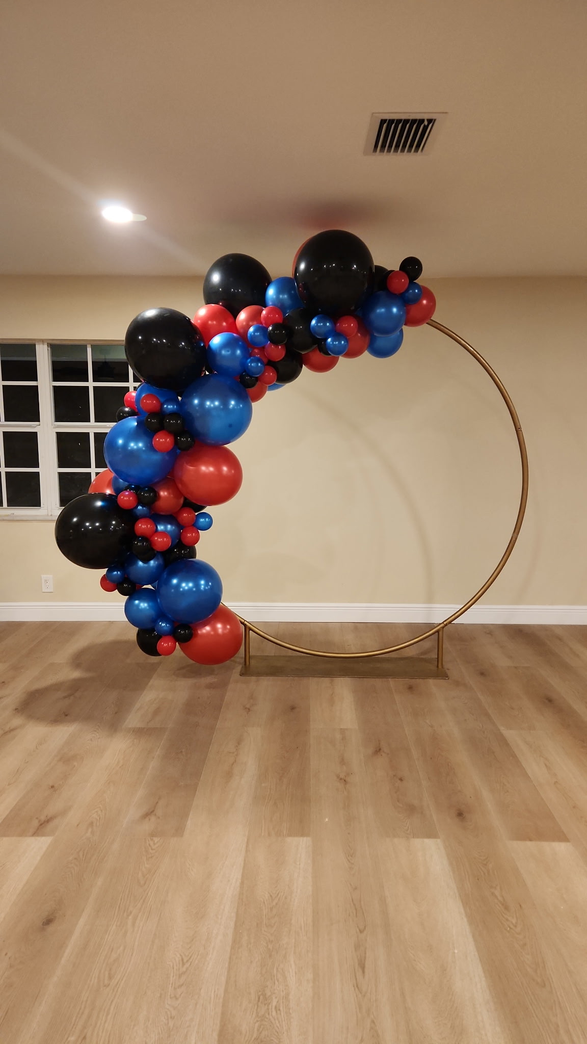 Custom balloon arches and optional customizable backdrops. Colors, size, and designs are made to fit your budget and decor theme. Includes all setup and take-down. Examples and pricing menu available. Our standard gold arch frame is included with the party room rental.